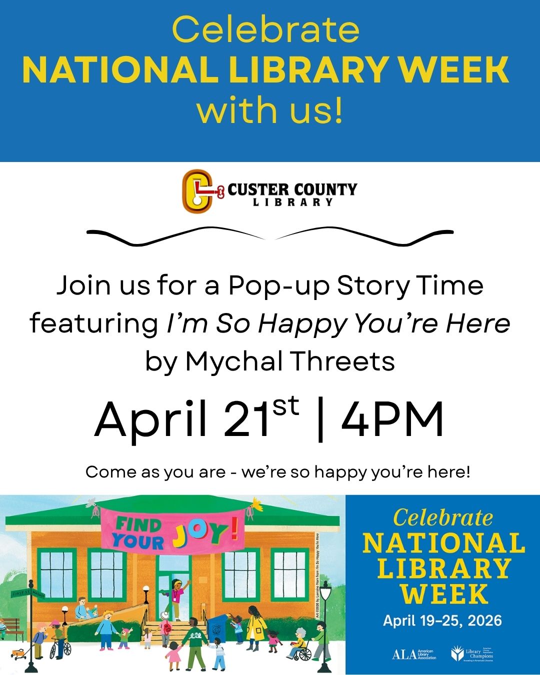 Custer County Library serves the communities of Custer County, South Dakota at branches in Custer and Hermosa. We provide resources and services in a welcoming environment to support a diverse community of life-long learners.